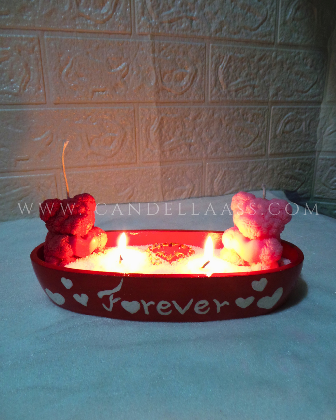 Celebrate love, companionship, and togetherness with our Handmade Boat-Shaped Concrete Jar Candle. Designed as a miniature boat, it holds fragrant soy wax inside and features two adorable teddy bears with the word “Forever” painted on the concrete along with cute heart detailing.