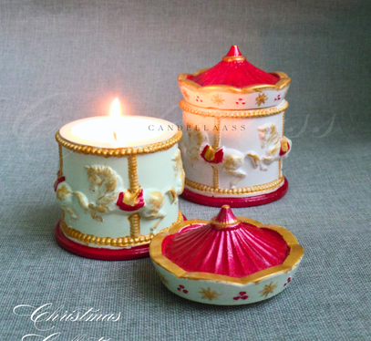 Step into a world of timeless charm with the Candellaass Horse Carousel Jar Scented Candle 🎠. Hand-poured with eco-friendly soy wax inside a beautifully crafted concrete jar, this candle combines luxury fragrance with artistry. The jar features delicate carousel horse motifs, embossed beaded trims, golden accents, and a pleated lid topped with a graceful finial—making it a stunning statement piece for your home.